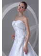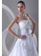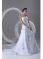 A-line Strapless Embroidery and Beading Court Train Wedding Dress