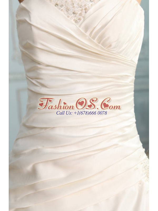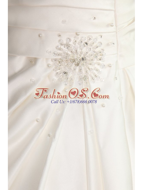 Home >  Wedding Dresses >  Perfect Wedding Dresses > A-Line Strapless Floor-length Beading Lace Up Wedding Dress in Champagne