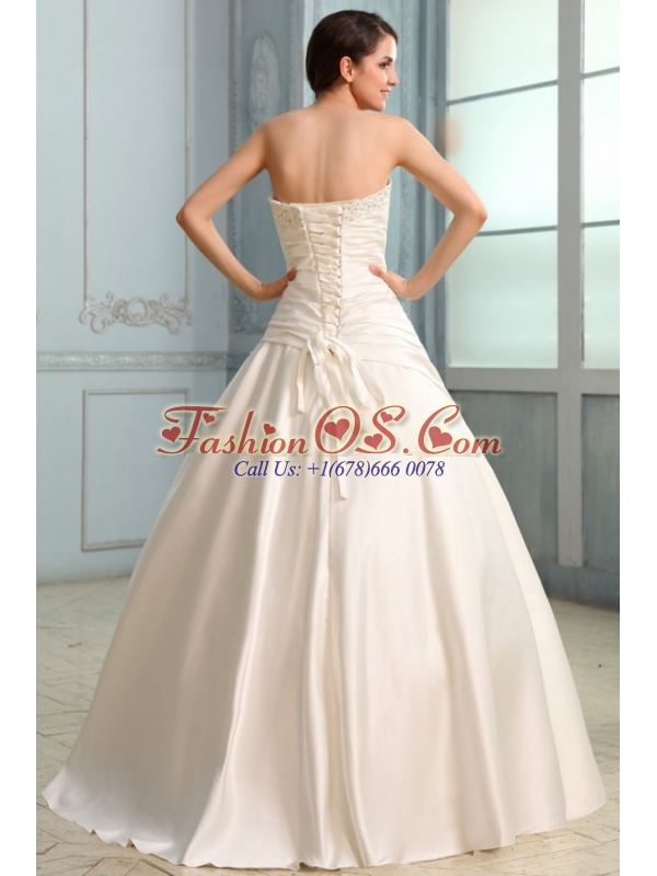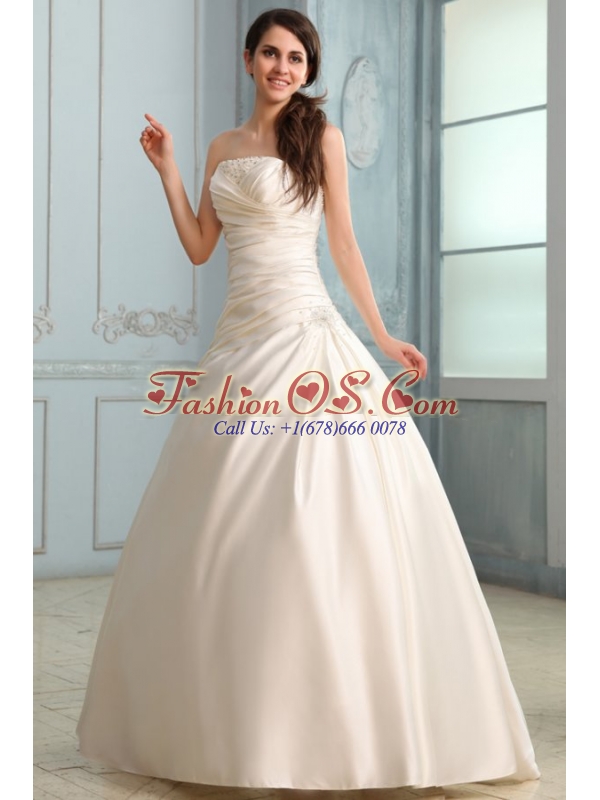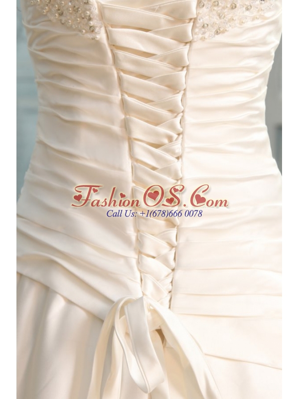 A-Line Strapless Floor-length Beading Lace Up Wedding Dress in Champagne