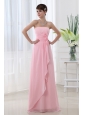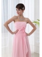 A-line Strapless Hand Made Flowers Chiffon Baby Pink Prom Dress