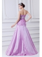 Home >  Prom Dresses >  Popular Prom Dresses > A-line Strapless Lilac Taffeta Appliques with Beading Prom Dress