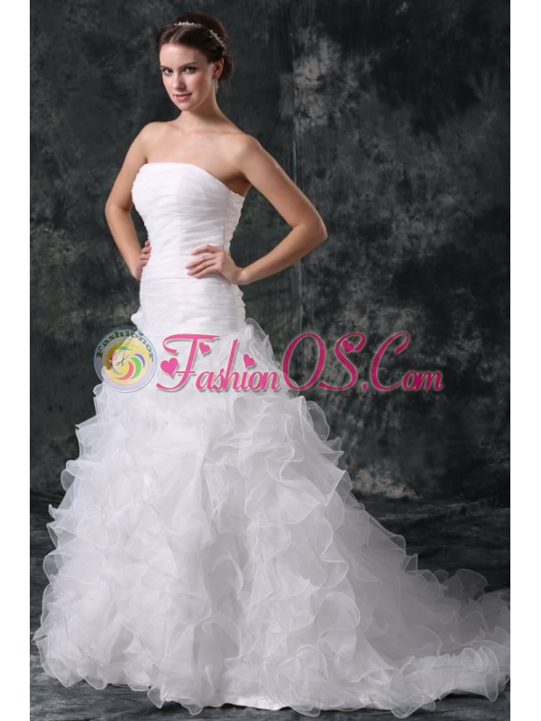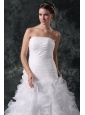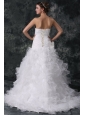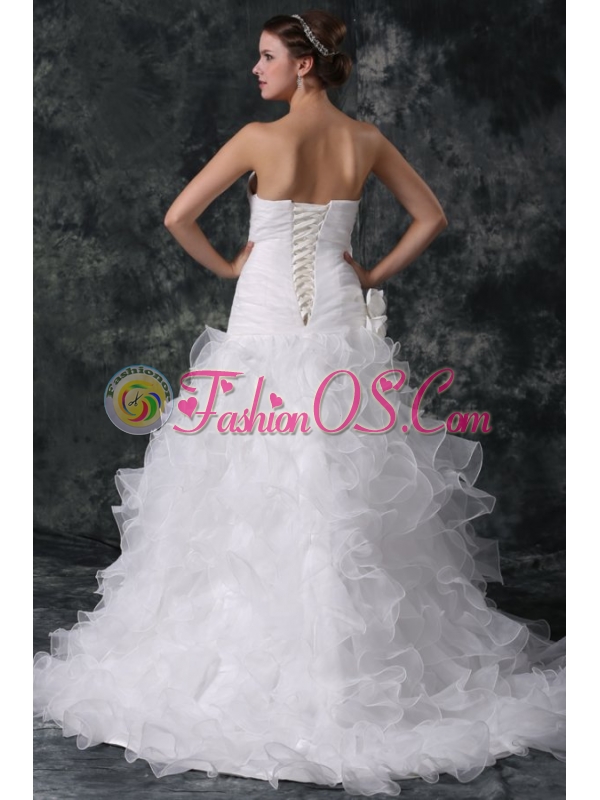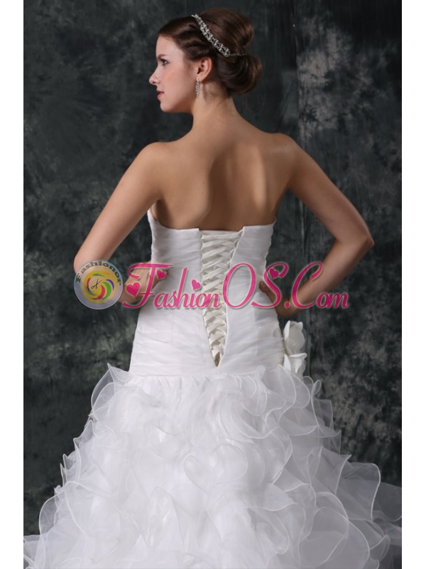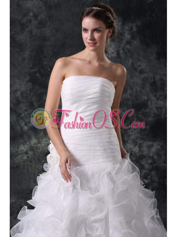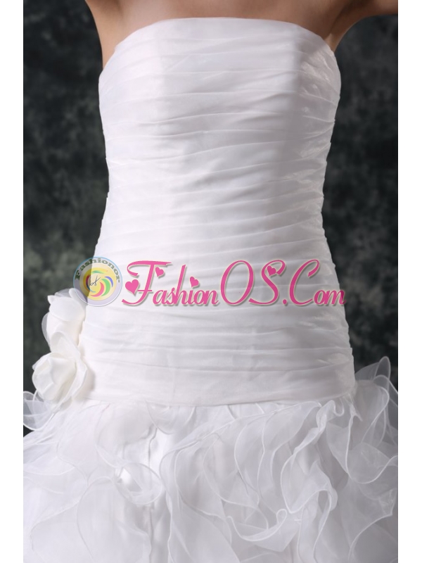 A-line Strapless Organza Wedding Dress with Flower and Ruffles Layered