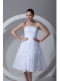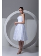Home >  Wedding Dresses >  Perfect Wedding Dresses > A-Line Strapless Tea-length Lace and Ruching Wedding Dress