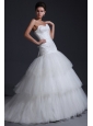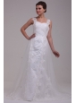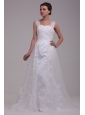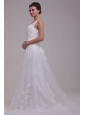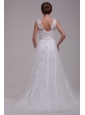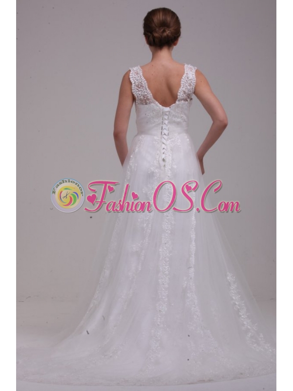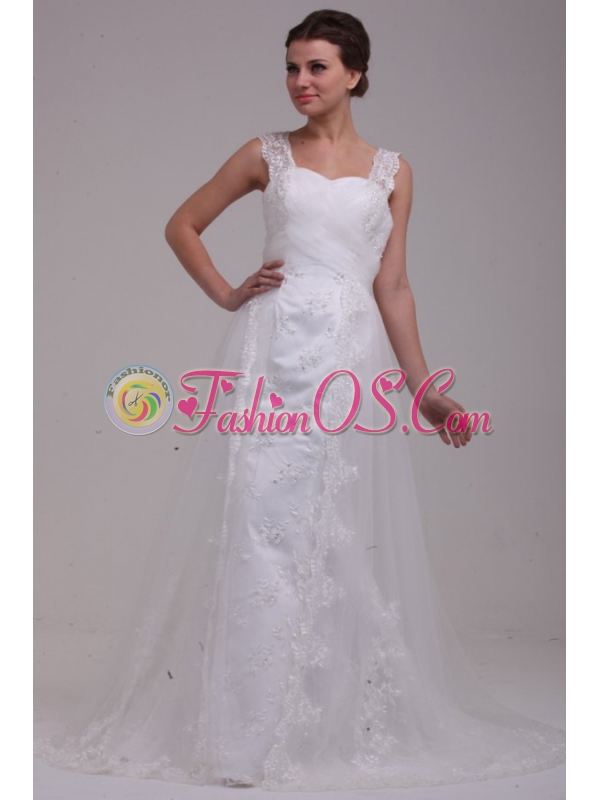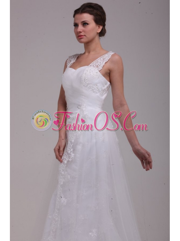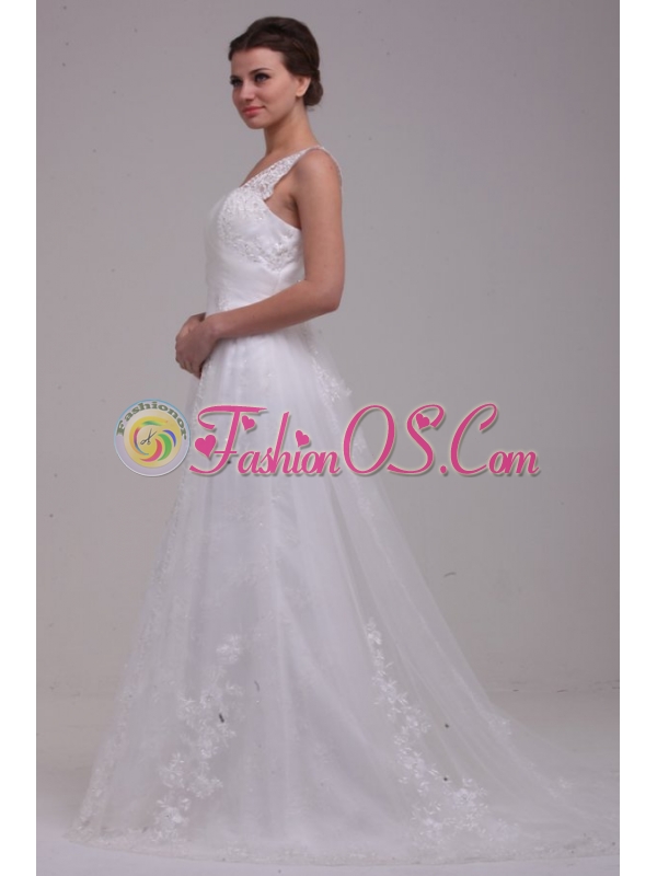 A-Line Straps Brush Train Appliques Tulle Wedding Dress