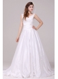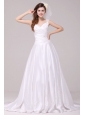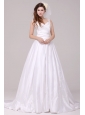 Home >  Wedding Dresses >  Perfect Wedding Dresses > A-Line Straps Embroidery Taffeta Wedding Dress with Brush Train