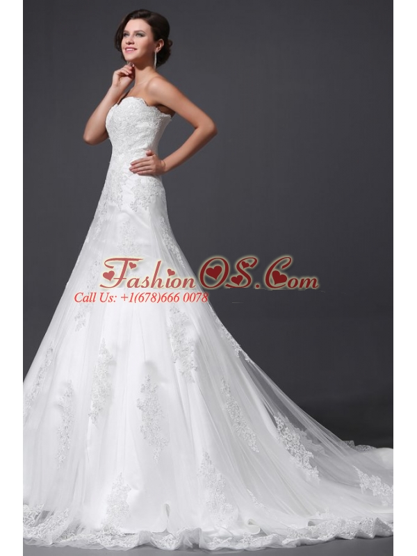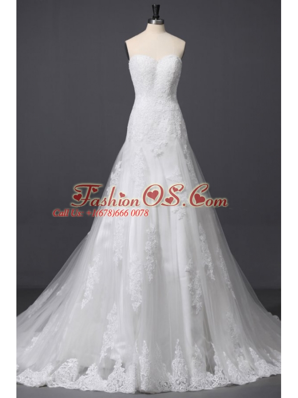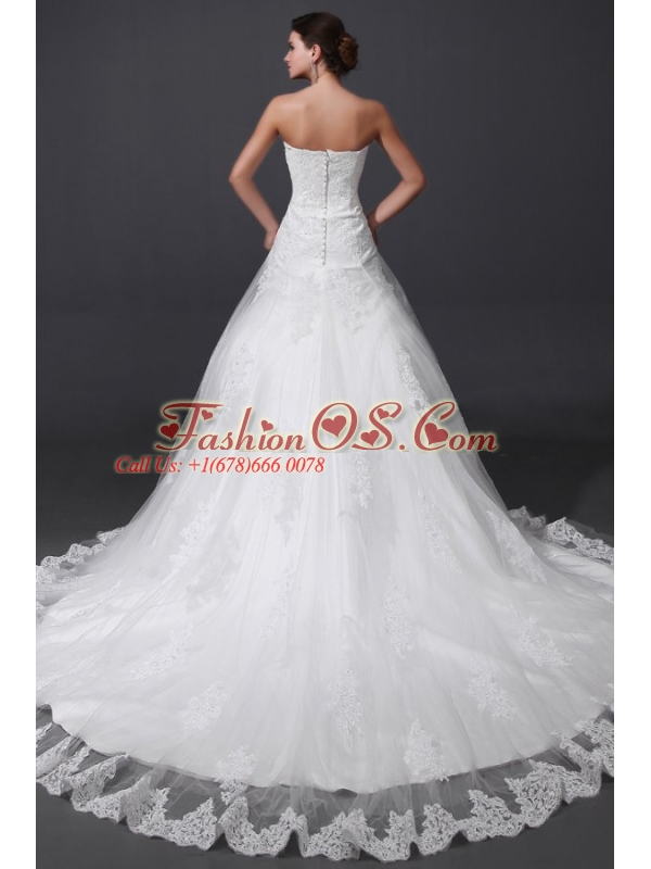 A-Line Sweetheart Appliques and Lace Wedding Dress with Court Train