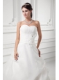 A-line Sweetheart Appliques Pick-ups Chapel Train Wedding Dress