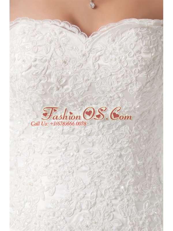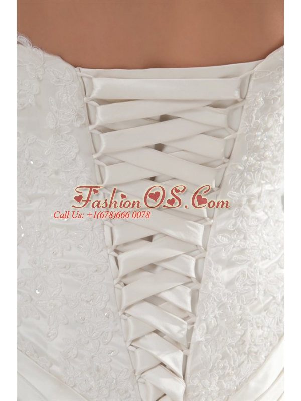 A-line Sweetheart Appliques Ruching Court Train Wedding Dress