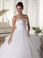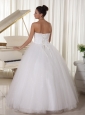 Simply designed dresses can also make a dramatic first impression, this white wedding dress is the perfect example. The elegant strapless bodice features intricate beadwork. The full A-line tulle skirt is pure with no redundant, and an adjustable lace up in the back completes this fabulous design. You are sure to be the most beautiful bride. What are you looking for? Just this one!