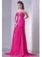 Home >  Prom Dresses >  Fashionable Prom Dresses > A-line Sweetheart Beading and Ruche Chiffon Prom Dress in Hot Pink