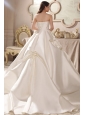 A-line Sweetheart Beading Bow Ruching Chapel Train Wedding Dress
