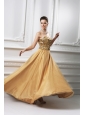 A-line Sweetheart Beading Organza Floor-length Prom Dress