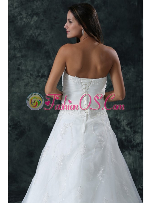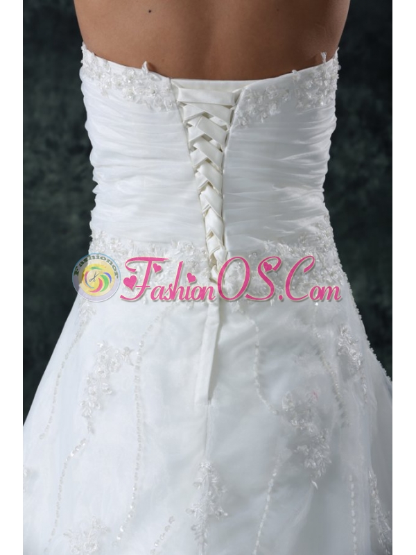 A-Line Sweetheart Beading Organza Wedding Dress with Court Train