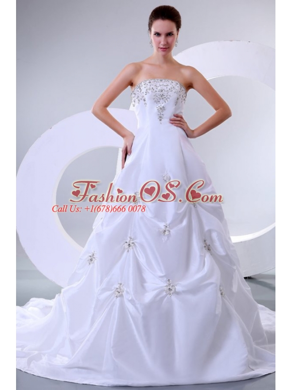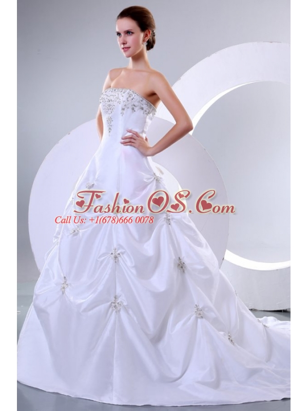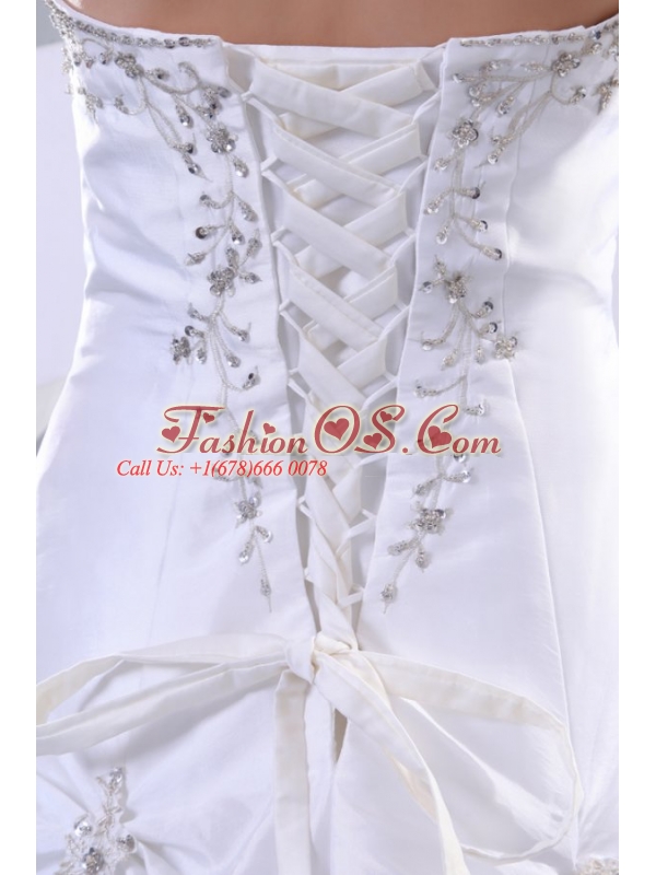Home >  Wedding Dresses >  Perfect Wedding Dresses > A-Line Sweetheart Court Train Beading Taffeta Wedding Dress with Lace Up