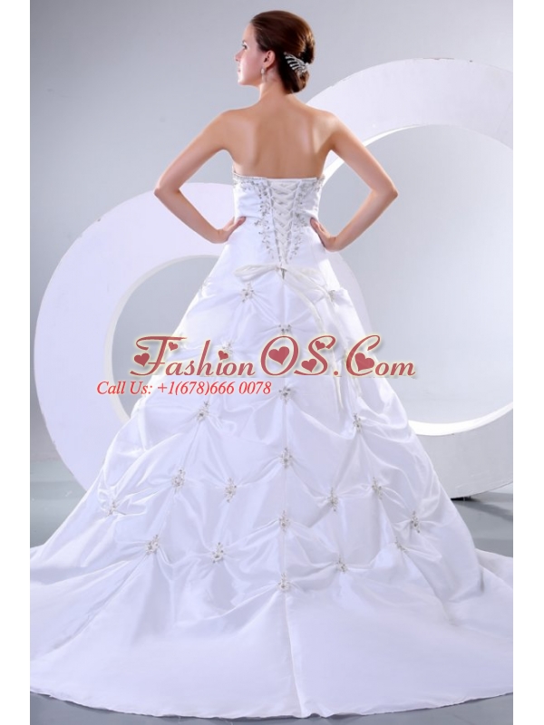 A-Line Sweetheart Court Train Beading Taffeta Wedding Dress with Lace Up