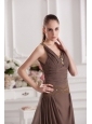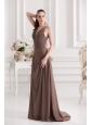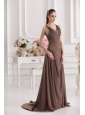 Home >  Prom Dresses >  Elegant Prom Dresses > A-line Sweetheart Floor-length Beading Ruching Brown Prom Dress 1