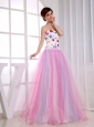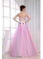 A-Line Sweetheart Organza Pink Floor-length 2013 Prom Dress