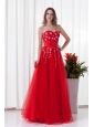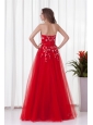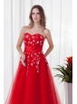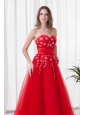 A-line Sweetheart Red Long Beading Tulle 2014 Prom Dress
