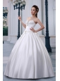A-line Sweetheart Satin Wedding Dress With Beading and Ruch Decorate Bust