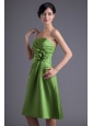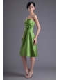 A-line Sweetheart Spring Green Ruching Hand Made Flower Prom Dress