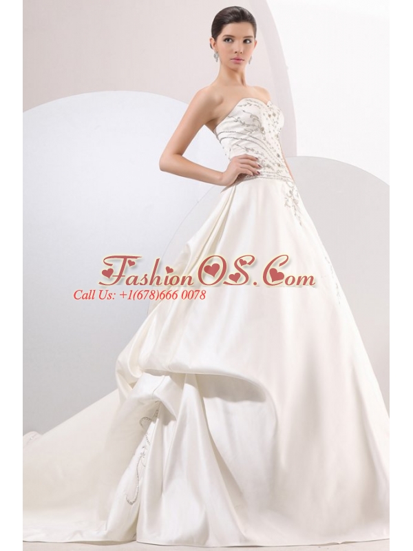 A-Line Sweetheart Taffeta Embroidery and Beading Wedding Dress