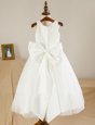 Home >  Special Occasion Dresses >  Cheap Flower Girl Dresses > A-line Toddler Flower Girl Dress White Scoop Tulle Sleeveless Floor Length Zipper