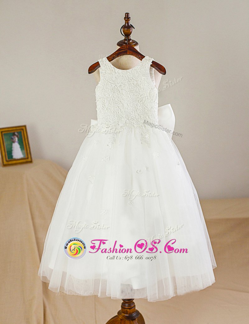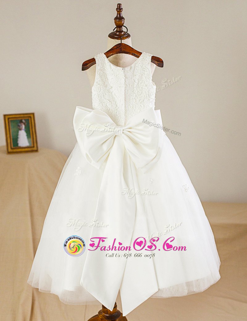 A-line Toddler Flower Girl Dress White Scoop Tulle Sleeveless Floor Length Zipper