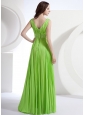 A-Line V-neck Chiffon Floor-length Pleat Prom Dress