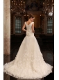 Home >  Wedding Dresses >  Perfect Wedding Dresses > A-Line V-Neck Court Train Ruching Zipper Up Tulle Wedding Dress