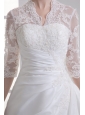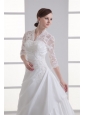 Home >  Wedding Dresses >  Perfect Wedding Dresses > A-line V-neck Long Sleeves Taffeta Court Train Wedding Dress