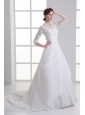 A-line V-neck Long Sleeves Taffeta Court Train Wedding Dress