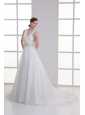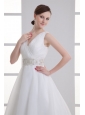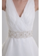 Home >  Wedding Dresses >  Perfect Wedding Dresses > A-line V-neck Ruching Organza Beading Belt Court Train Wedding Dress