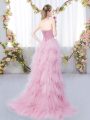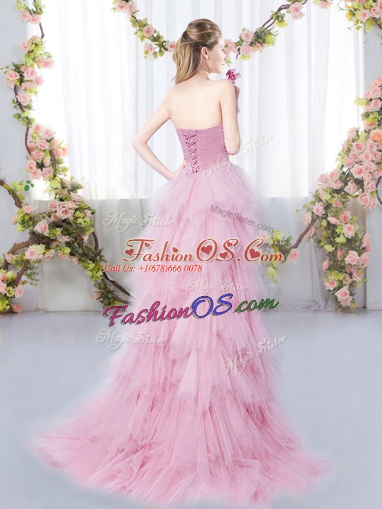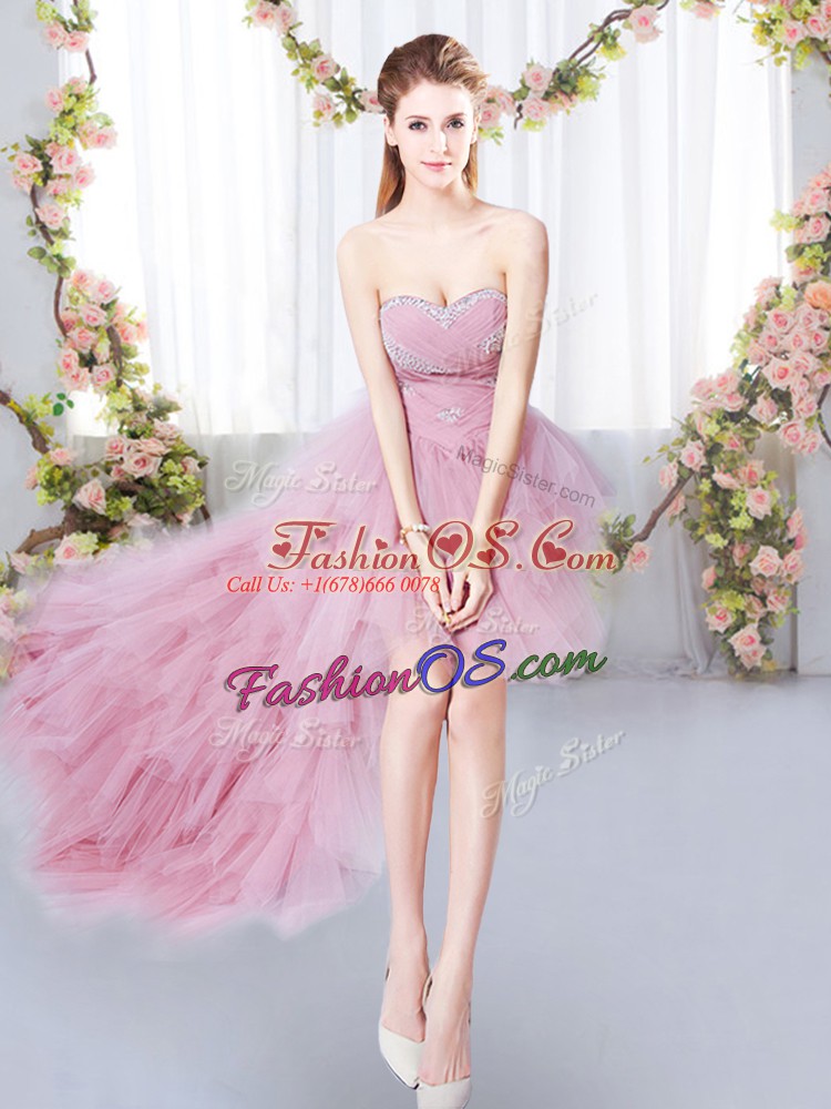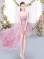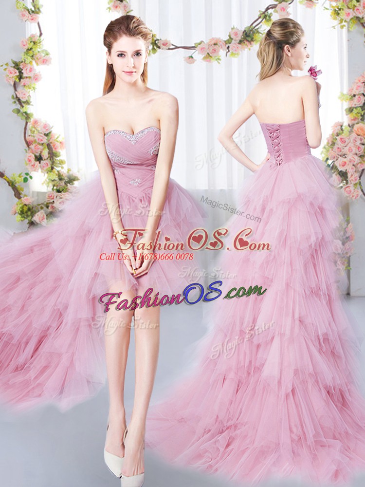 A-line Wedding Guest Dresses Pink Sweetheart Tulle Sleeveless High Low Lace Up