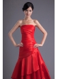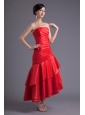 A-line Wine Red Strapless Ruching Asymmetrical Prom Dress