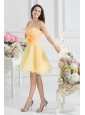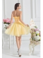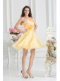 Home >  Prom Dresses >  Elegant Prom Dresses > A-line Yellow Strapless Hand Made Flower Organza Prom Dress