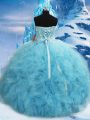 Home >  Quinceanera Dresses >  In Stock Quinceanera Dresses > Amazing Aqua Blue Lace Up 15th Birthday Dress Beading and Pick Ups Sleeveless Floor Length