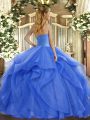 Amazing Baby Blue Strapless Neckline Ruffles Ball Gown Prom Dress Sleeveless Lace Up