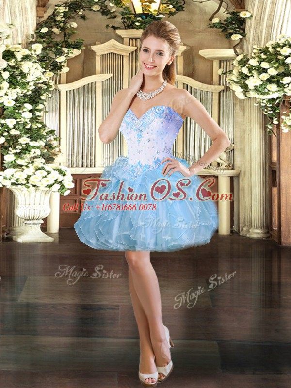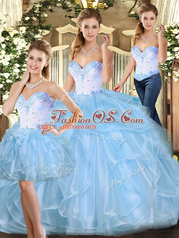 Home >  Quinceanera Dresses >  Detachable Quinceanera Skirts > Amazing Blue Ball Gowns Halter Top Sleeveless Organza Floor Length Lace Up Beading and Ruffles 15 Quinceanera Dress