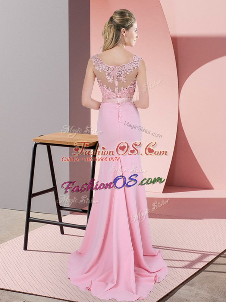 Amazing Chiffon V-neck Sleeveless Sweep Train Zipper Beading and Lace and Appliques Party Dress for Toddlers in Apple Green