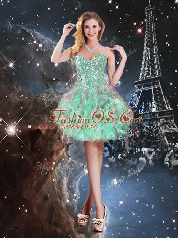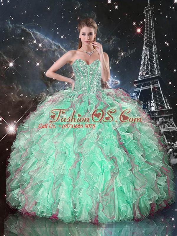 Amazing Organza Sleeveless Floor Length 15th Birthday Dress and Beading and Ruffles
