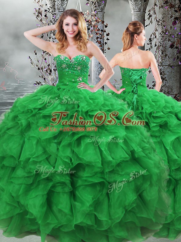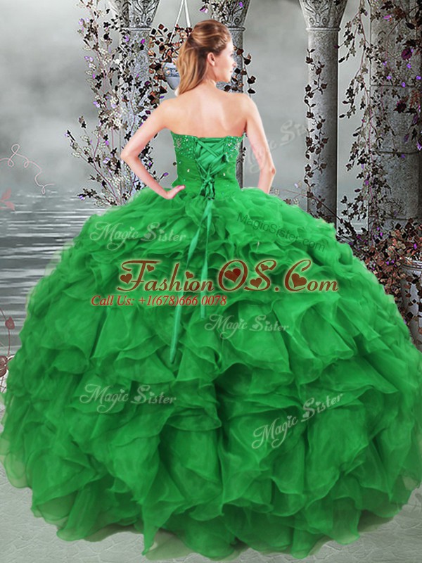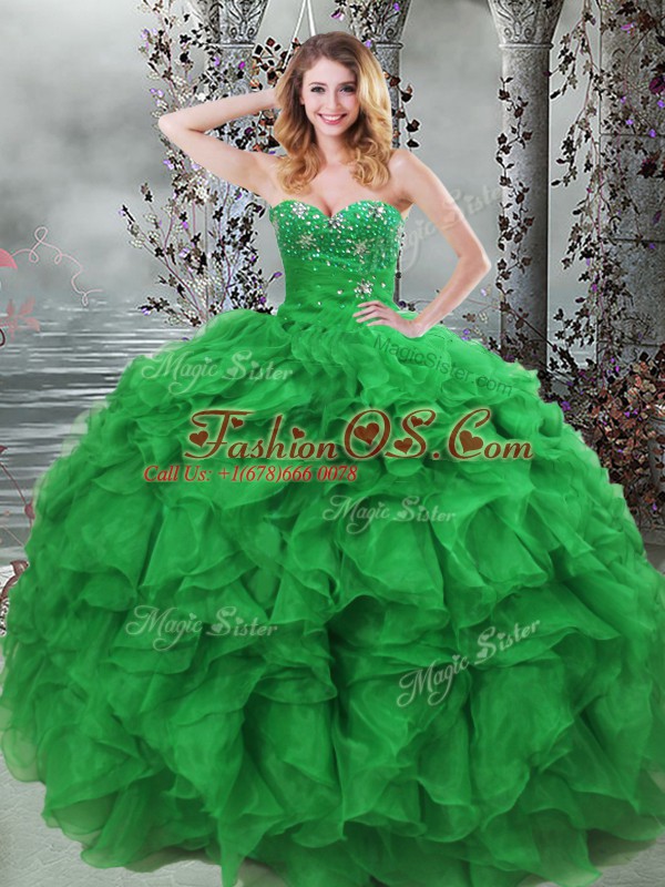 Amazing Organza Sweetheart Sleeveless Lace Up Beading and Ruffles 15 Quinceanera Dress in Green