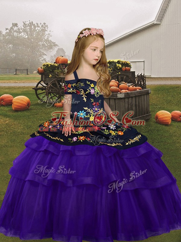 Amazing Purple Little Girls Pageant Dress Party and Wedding Party with Embroidery and Ruffles Straps Sleeveless Lace Up