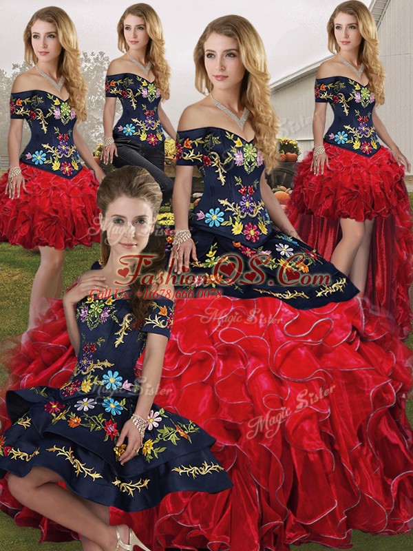 Home >  Quinceanera Dresses >  Detachable Quinceanera Skirts > Amazing Red And Black Sleeveless Floor Length Embroidery and Ruffles Lace Up Ball Gown Prom Dress