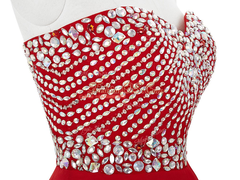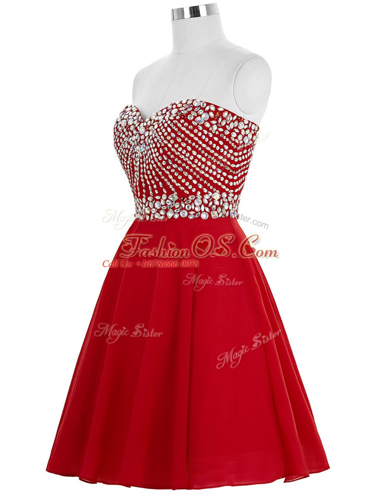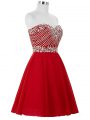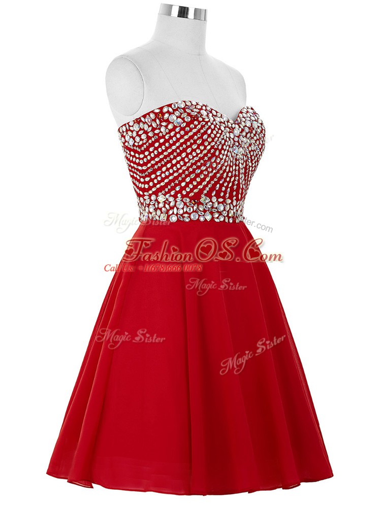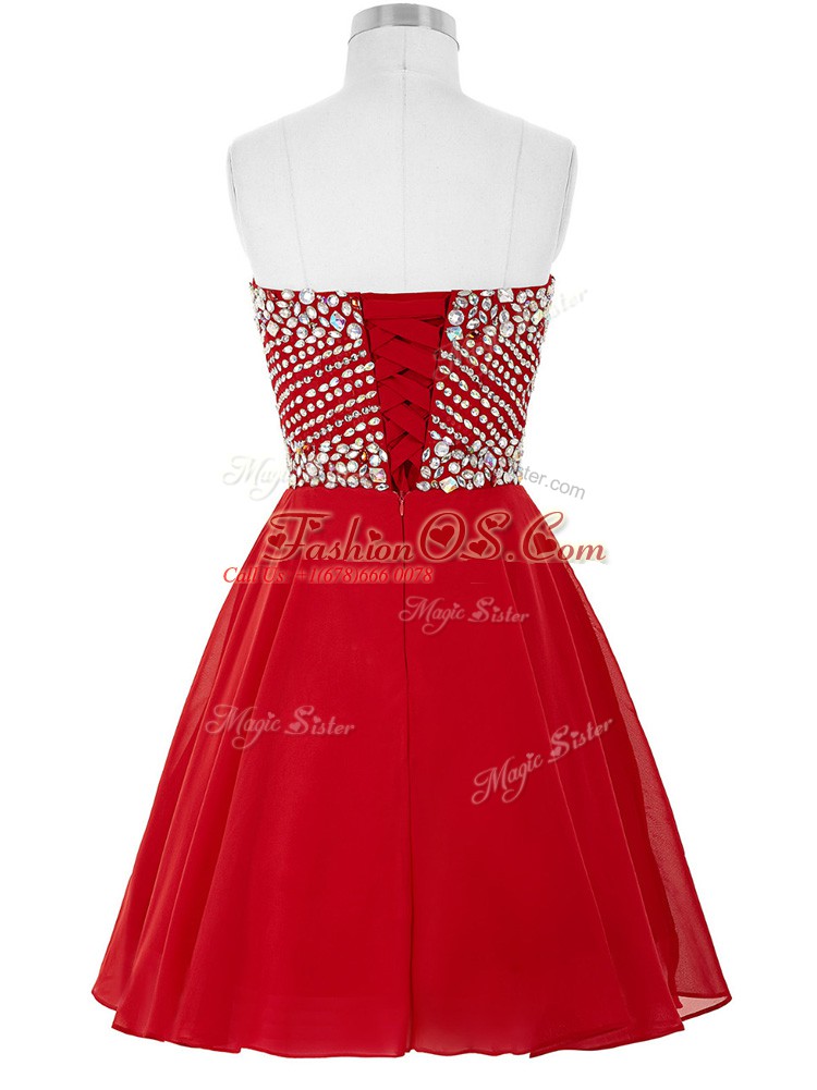 Amazing Red Sleeveless Chiffon Lace Up Cocktail Dresses for Prom and Party and Sweet 16