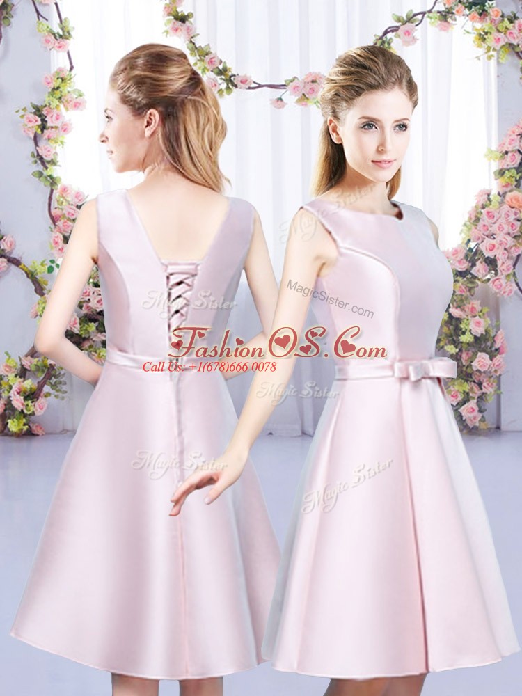 Amazing Scoop Sleeveless Satin Quinceanera Court Dresses Bowknot Lace Up