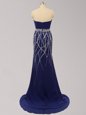 Home >  Prom Dresses >  Plus Size Prom Dresses > Amazing Sleeveless Beading Zipper Dress for Prom with Navy Blue Brush Train