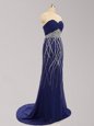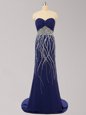 Amazing Sleeveless Beading Zipper Dress for Prom with Navy Blue Brush Train
