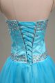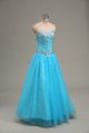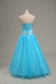 Home >  Prom Dresses >  Junior Prom Dresses > Amazing Sleeveless Tulle Floor Length Lace Up Prom Gown in Aqua Blue with Beading