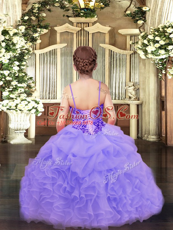 Home >  Special Occasion Dresses >  Lovely Little Girl Pageant Dresses > Amazing Spaghetti Straps Sleeveless Organza Girls Pageant Dresses Beading and Ruffles and Pick Ups Lace Up