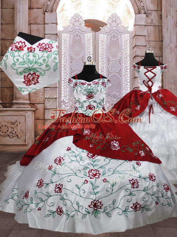 Amazing Spaghetti Straps Sleeveless Taffeta Little Girls Pageant Gowns Embroidery and Ruffled Layers Lace Up